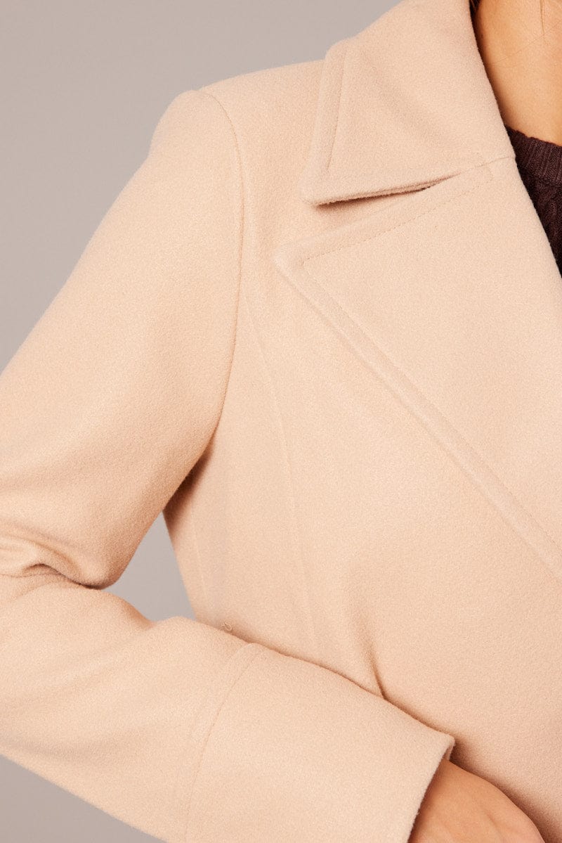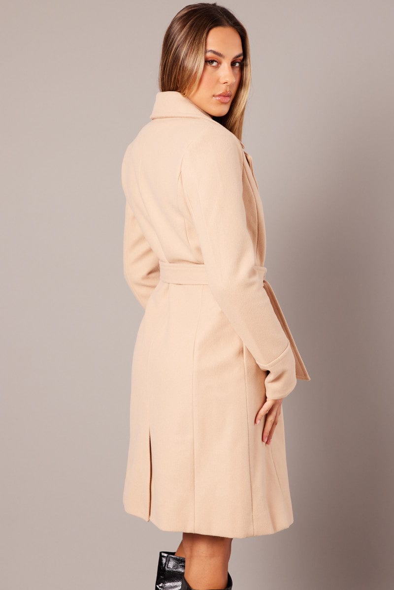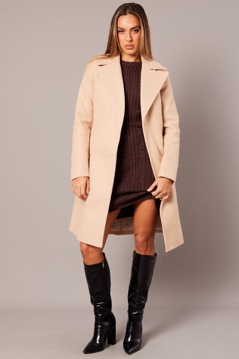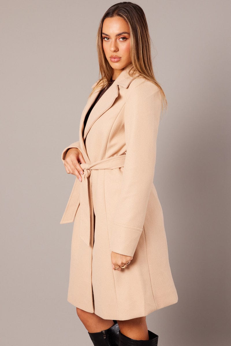 Beige Tie Front Coat Knee Length