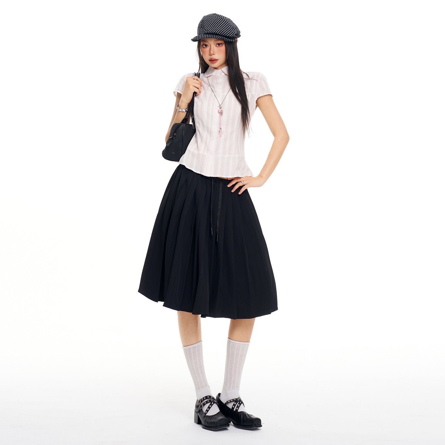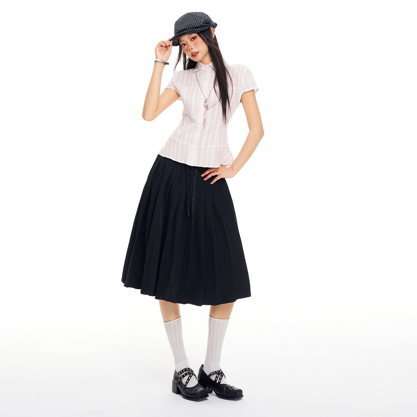Women's Preppy-Style Pleated Skirt — Slimming A-Line Midi Skirt (Ideal for Petite Frames)