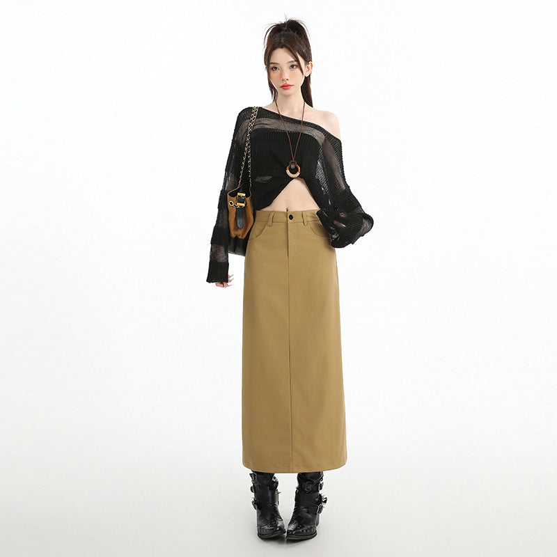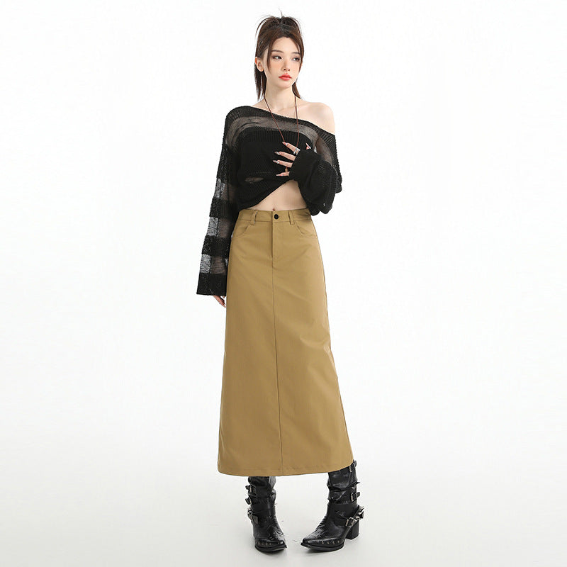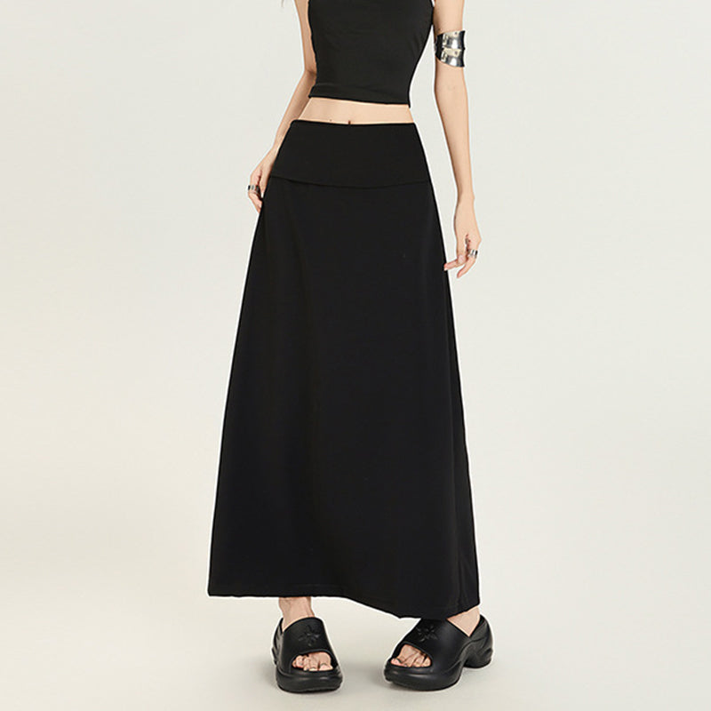 High-Waisted, Slimming, Mid-Length A-Line Skirt with Side Slit (Hip-Hugging Style)