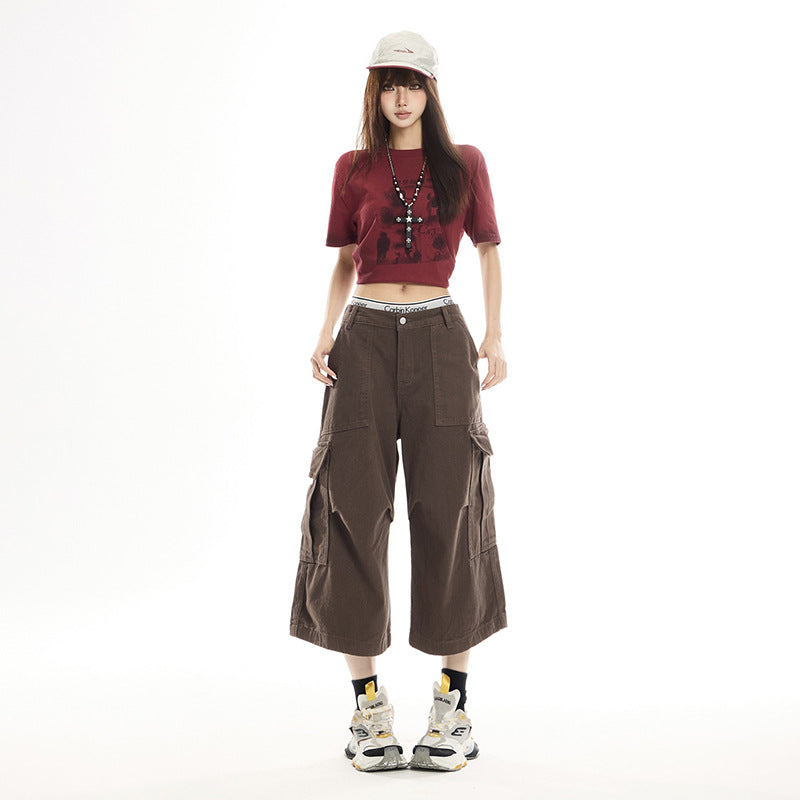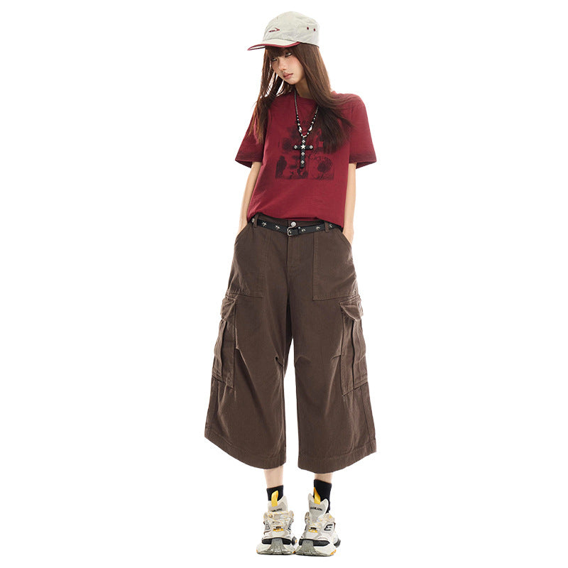 Brown Straight-Leg Wide-Leg Pants — Loose Fit, High-Waisted, Slimming, and Versatile