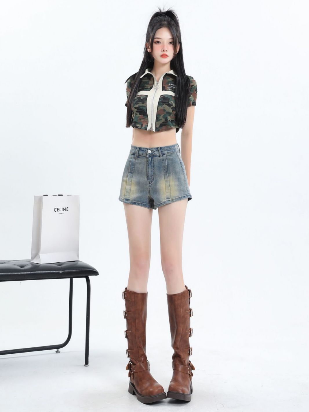 American Retro High-Waisted Denim Shorts