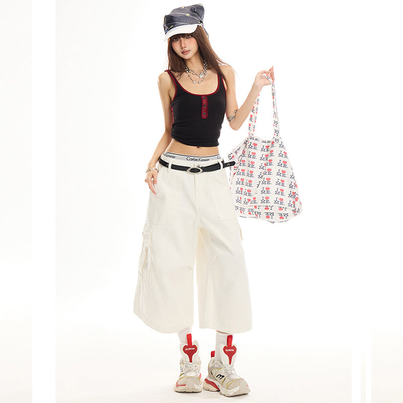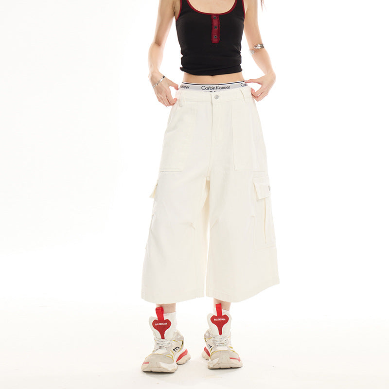 White Straight-Leg, Loose-Fit, High-Waisted, Slimming, Versatile Wide-Leg Pants