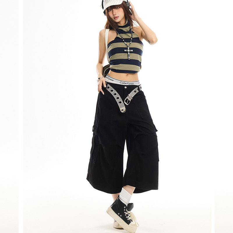 Black, Straight-Leg, Loose-Fit, High-Waisted, Slimming, Versatile Wide-Leg Trousers