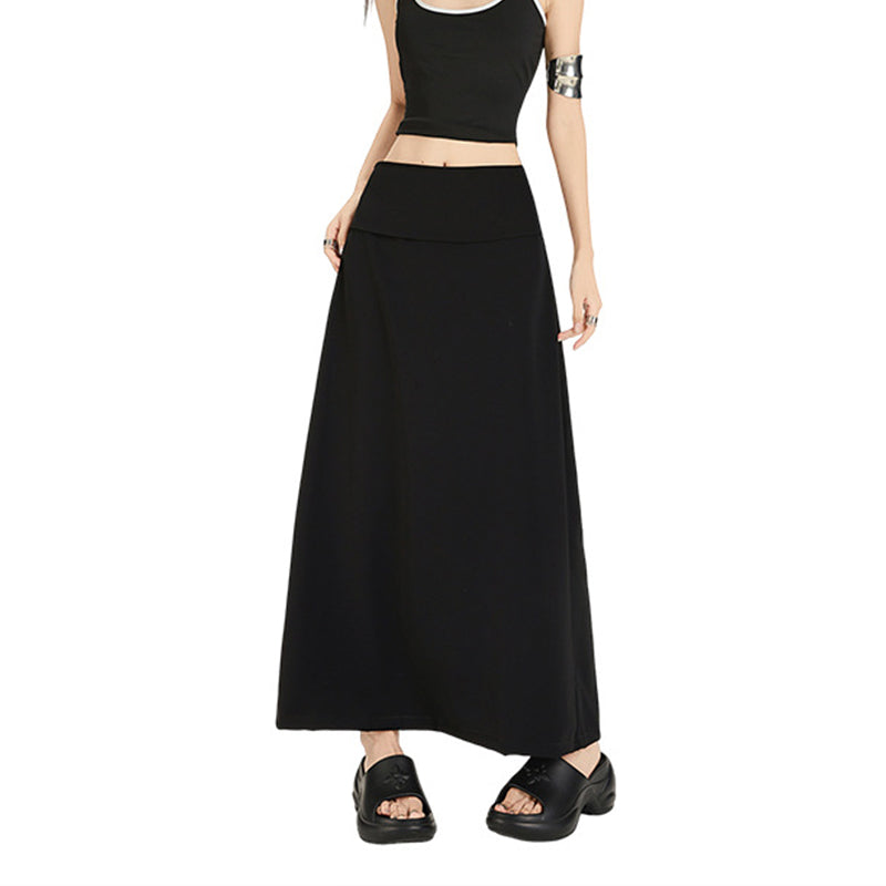 Light Blue "Hot Girl" Style High-Waisted, Loose-Fit A-Line Maxi Skirt — Slimming & Hip-Hugging