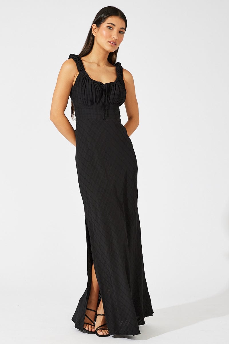 Black Maxi Dress Short Sleeve Ruched Bust