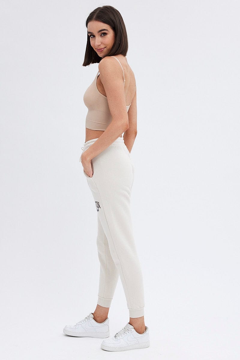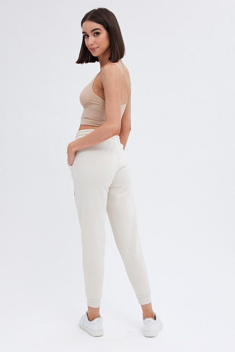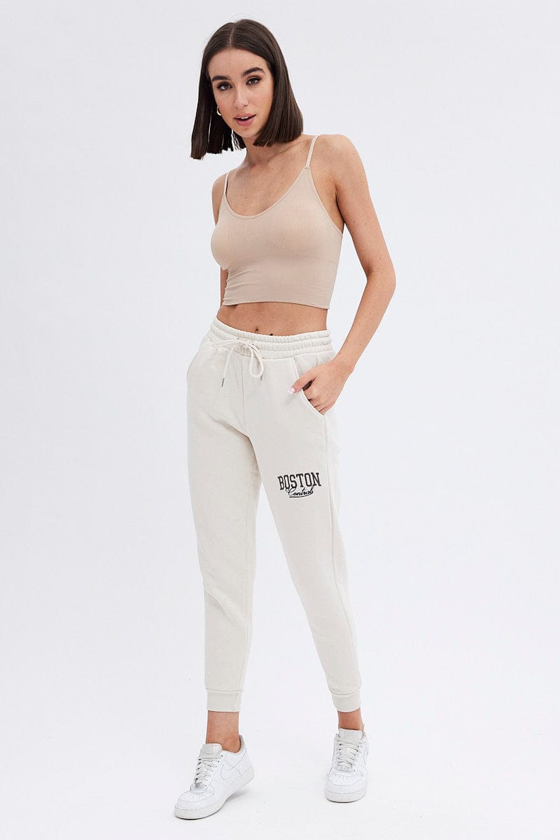 Beige Track Pants High Rise Jogger