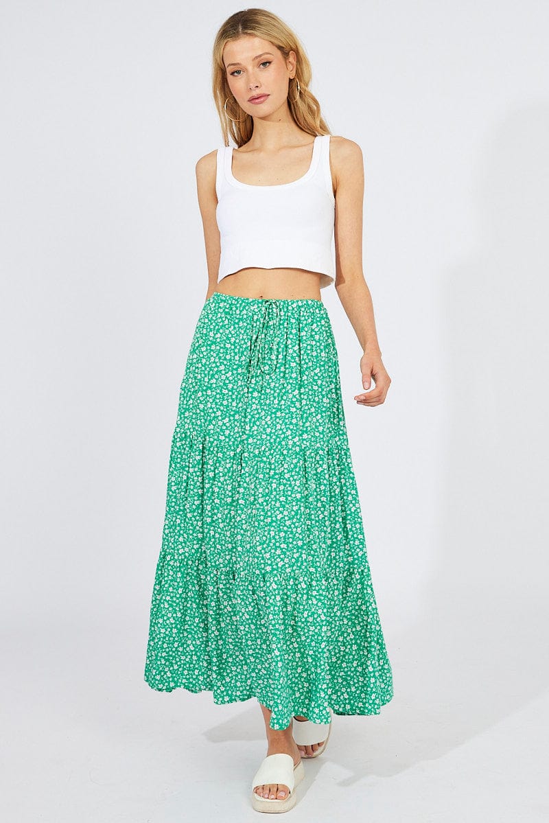 Green Ditsy Maxi Skirt High Rise