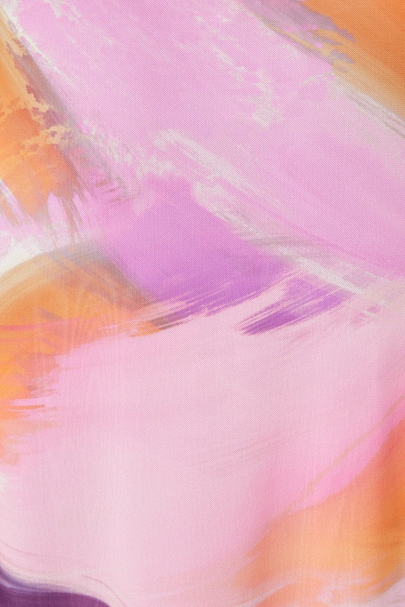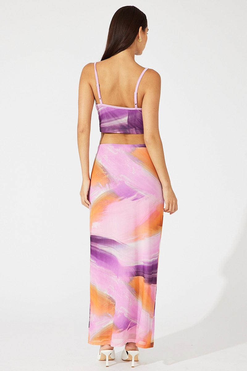 Pink Abstract Maxi Skirt High Rise Mesh
